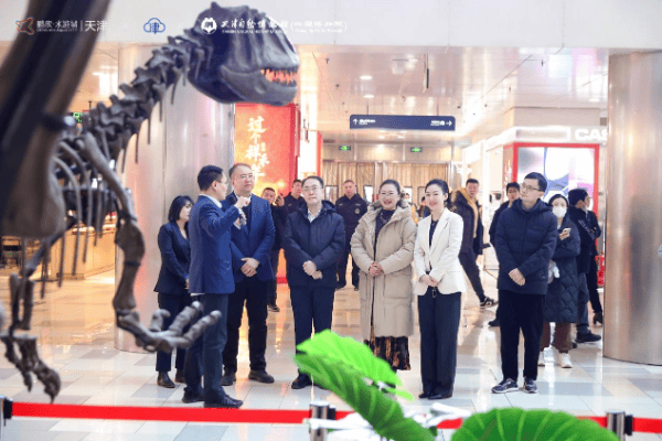 1月31日,由津云新媒体联手天津自然博物馆、天津鹏欣水游城打造的购物中心大型恐龙展首展巡礼——“龙腾水跃,奇遇自然”新春特展重磅启幕,为消费者、亲子家庭和自然科学爱好者打造了集游玩体验、拍照打卡、科普教育、购物休闲于一体的文化消费场景。